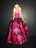 - Hot Pink Strapless Ball Gown with Black Flowered Lace Overlay Made to Fit the Barbie Doll